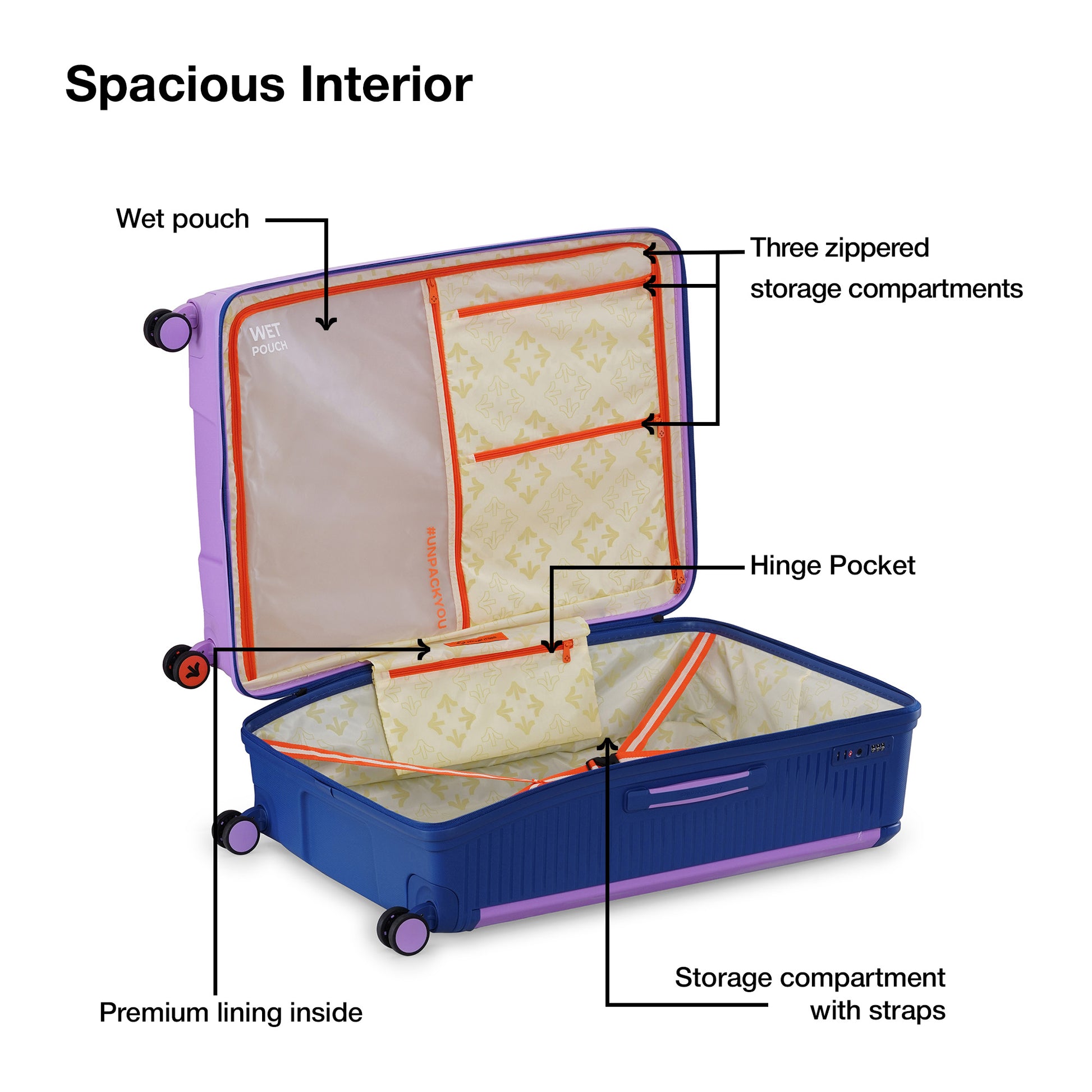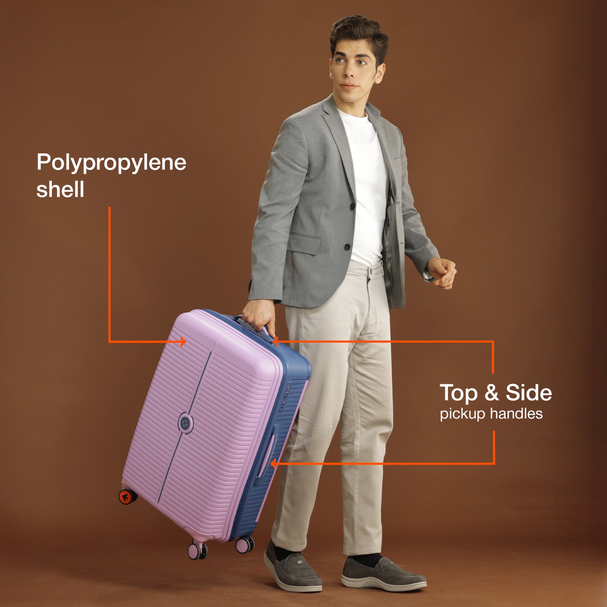 Nasher Miles Dubai TSA Lock Hard-Sided Polypropylene Check-in Luggage 28 inch | 75cm | 8 Wheels Small Trolley Bag for Travel | Suitcase (Lavender Navy Blue)
