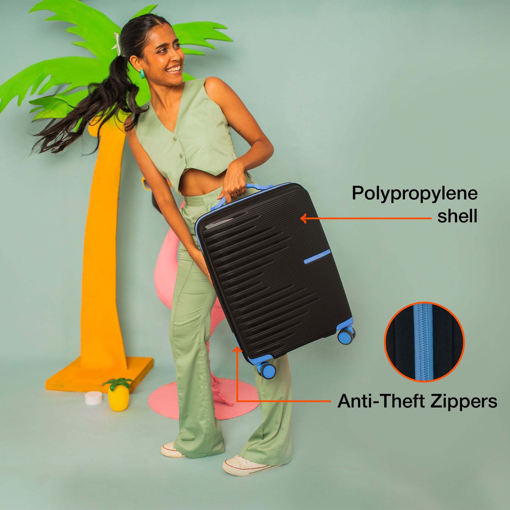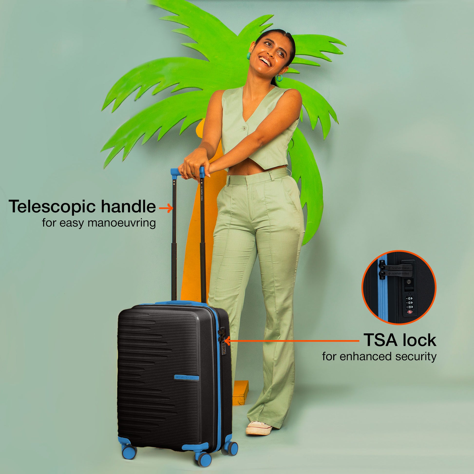 Nasher Miles Havelock TSA Lock and Anti-Theft Hard-Sided Polypropylene Cabin Luggage Black 20 inch |55 Trolley Bag | Suitcase