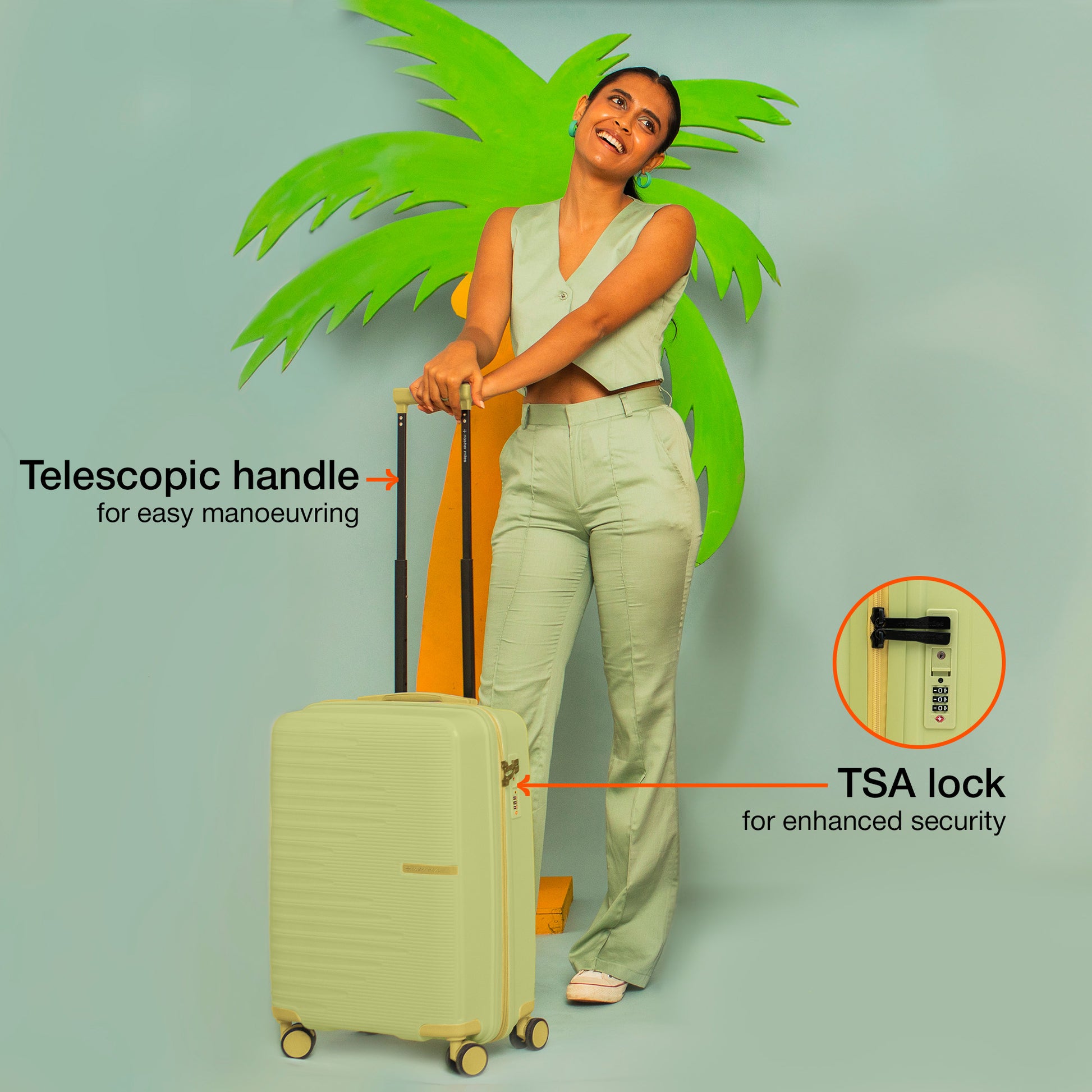 Nasher Miles Havelock TSA Lock and Anti-Theft Hard-Sided Polypropylene Cabin Luggage Green 20 inch |55 Trolley Bag | Suitcase