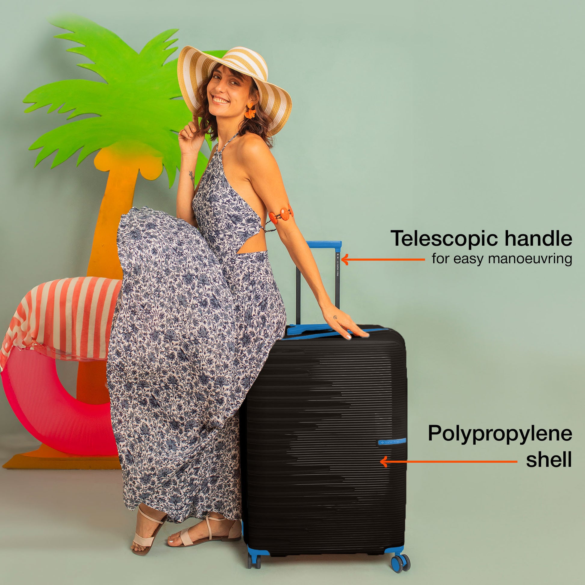 Nasher Miles Havelock TSA Lock and Anti-Theft Hard-Sided Polypropylene Check-in Luggage Black 24 inch |65 Trolley Bag | Suitcase