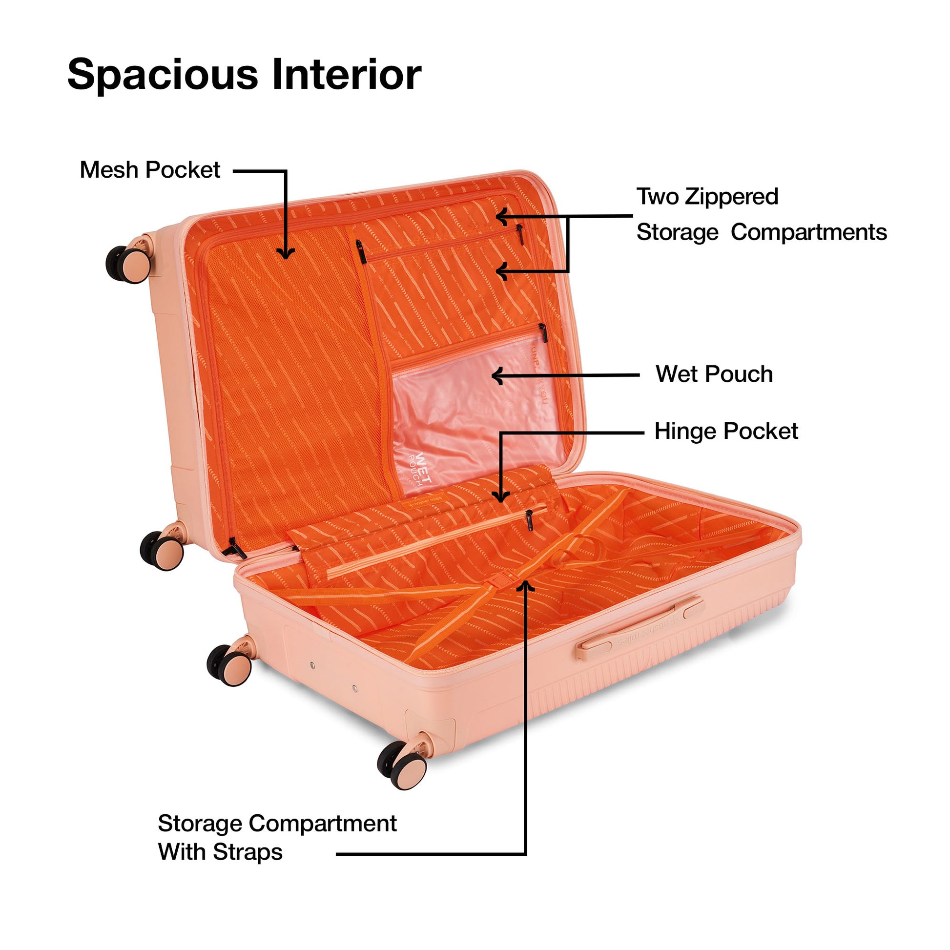 Nasher Miles Hawaii TSA Lock and Anti-Theft Hard-Sided Polypropylene Check-in Luggage Peach 28 inch |75 Trolley Bag | Suitcase