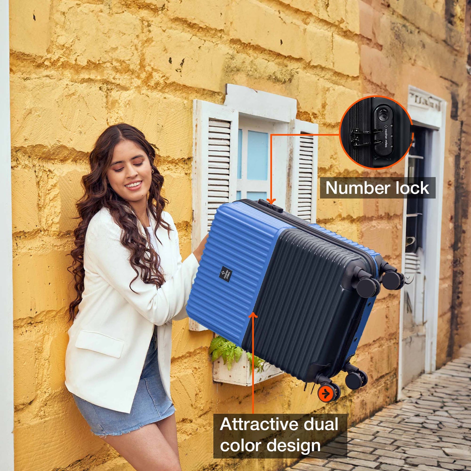 Nasher Miles Istanbul Hard-Sided ABS and PC Cabin Luggage 20 inch | 55cm | 8 Wheels Small Trolley Bag for Travel | Suitcase (Dark Blue)