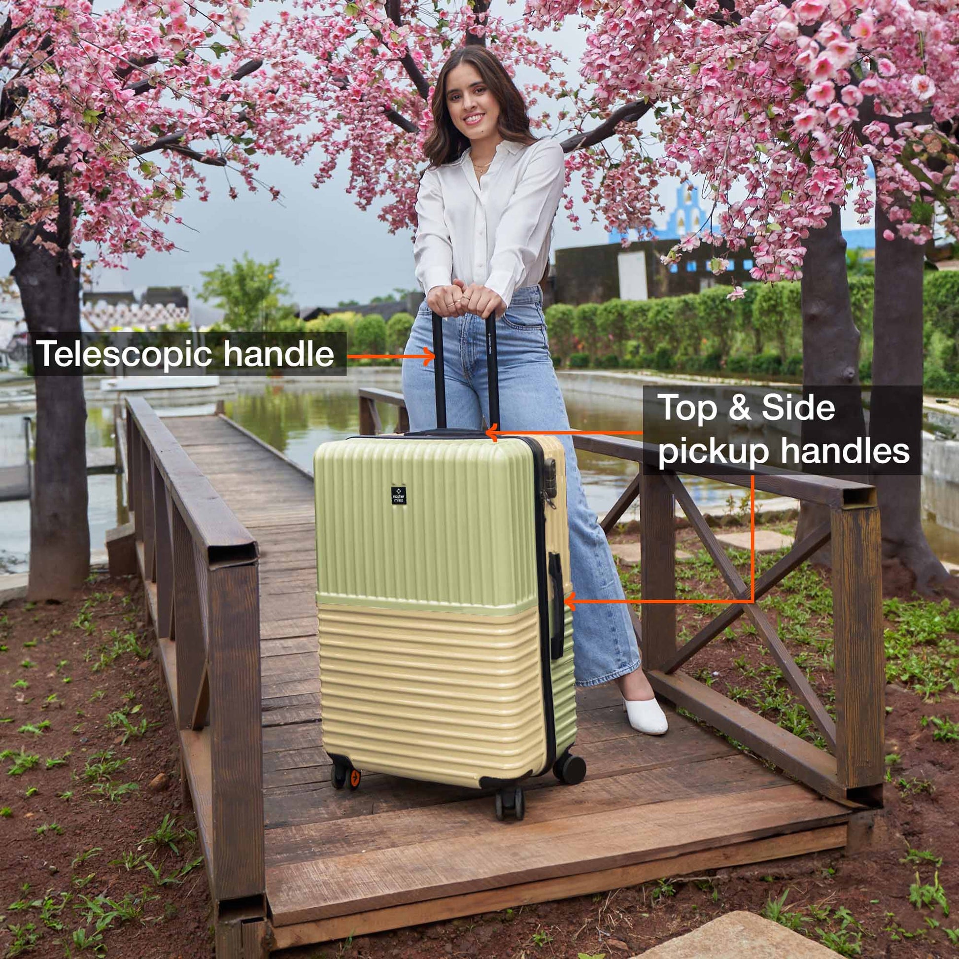Nasher Miles Istanbul Hard-Sided ABS and PC Check-in Luggage 24 inch | 65cm | 8 Wheels Medium Trolley Bag for Travel | Suitcase (Green Yellow)