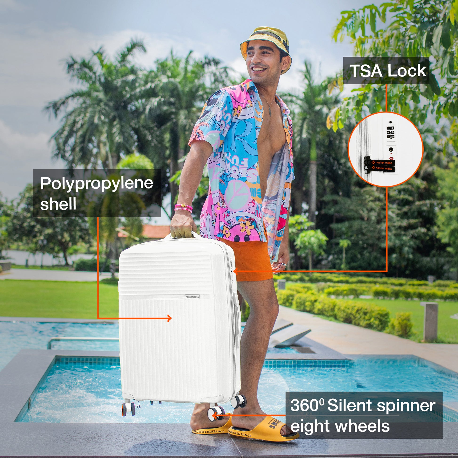 Nasher Miles Krabi Expander Hard-Sided Polypropylene Check-in Luggage White 28 inch |75 Trolley Bag
