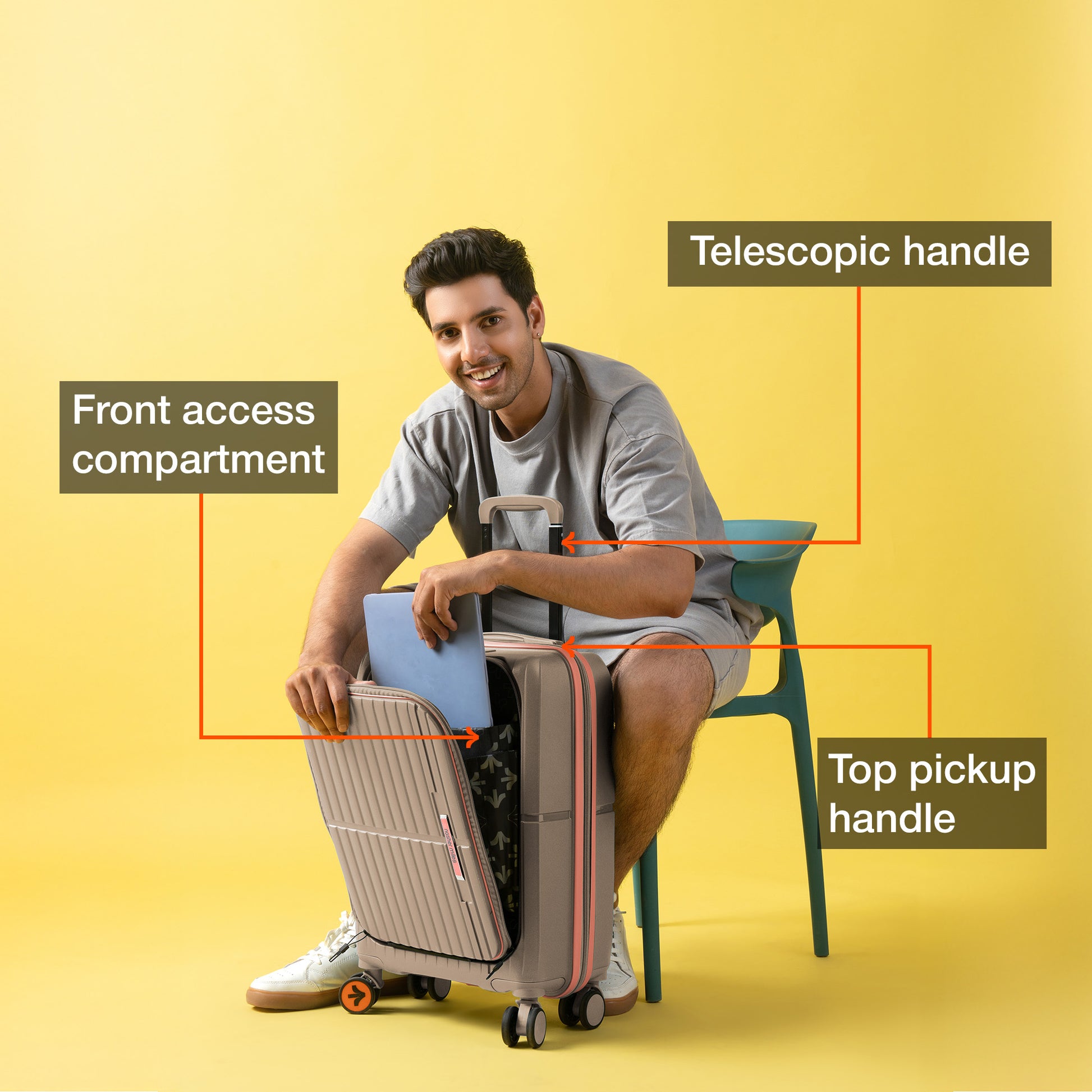 Nasher Miles Plus Springfield Hard-Sided Polypropylene Cabin Luggage with Laptop Compartment Champagne 20 inch |55 Trolley Bag