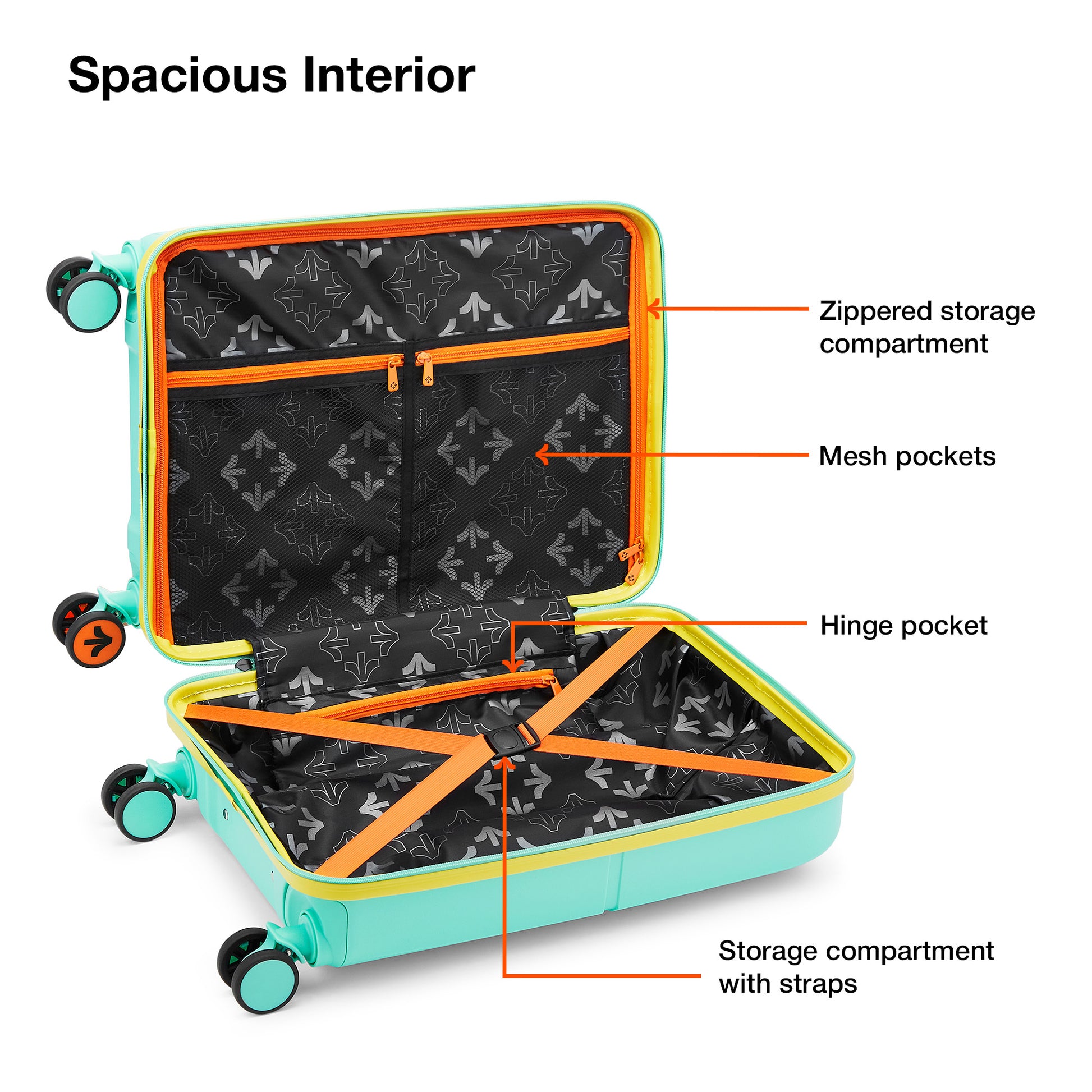 Organized Interior: Includes 2 spacious compartments along with 2 mesh pockets and a hinged pocket inside. This facilitates effortless and convenient packing, ensuring your essentials stay neatly organized while you travel.