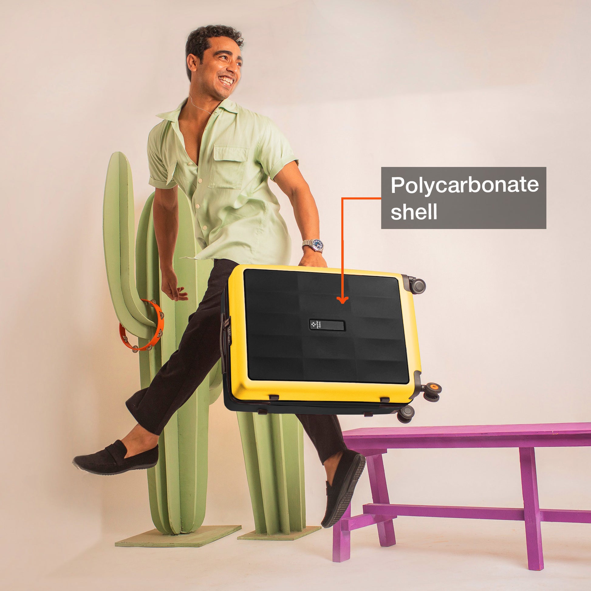 Nasher Miles Zanzibar TSA Lock Hard-Sided Polycarbonate Check-in Luggage Black Yellow 28 inch |75 Trolley Bag| Suitcase
