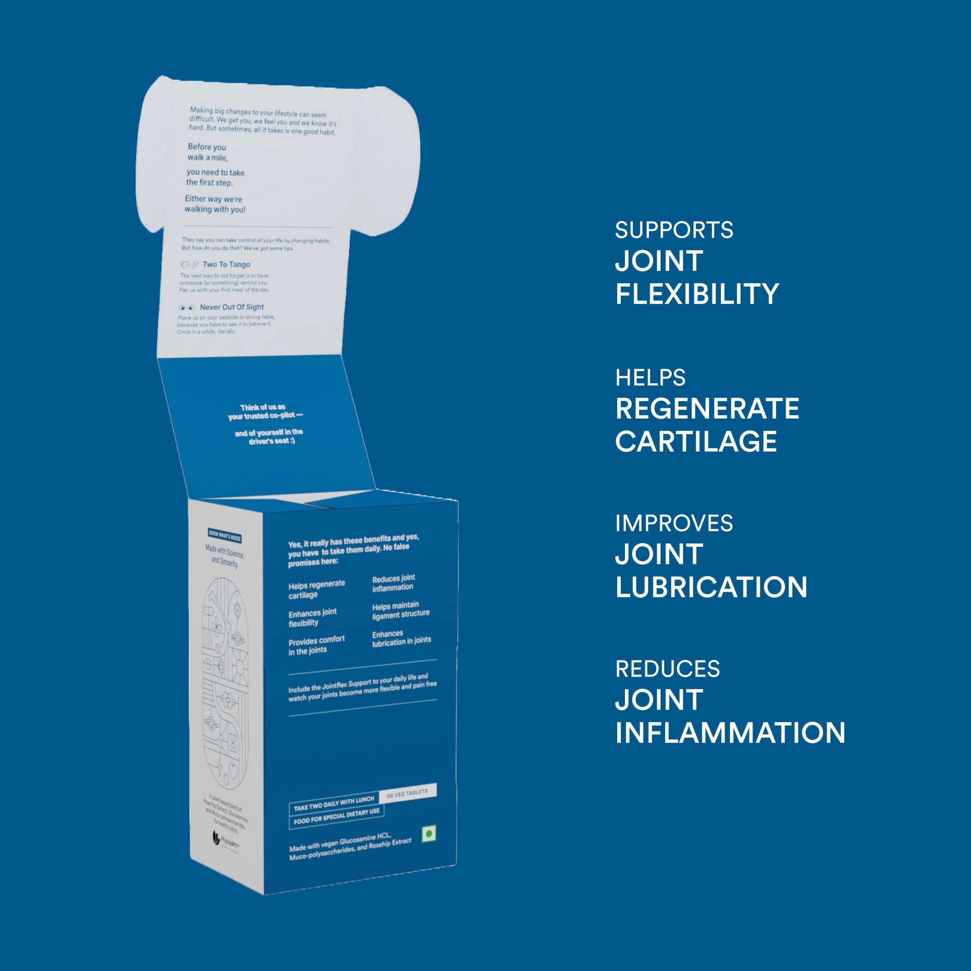 Jointflex is a thoughtfully developed, plant-based joint support supplement designed to nourish, protect, and maintain healthy joints. It combines three carefully selected ingredients—Vegan Glucosamine HCL, Rosehip Extract, and PhytoMPS—to address joint health at the root level rather than offering temporary relief.