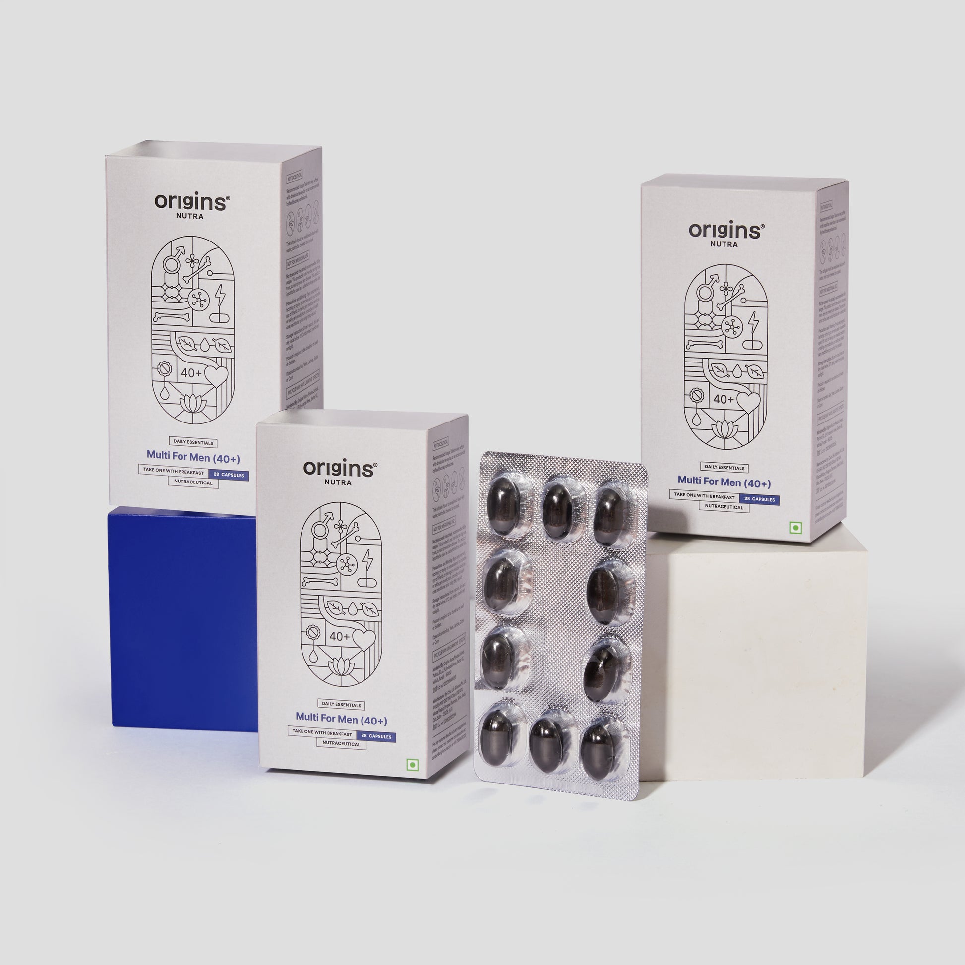 Origins Nutra Multivitamin for Men (40+) is a comprehensive daily supplement crafted to support men as nutritional needs change with age. It features a blend of essential vitamins, minerals, and herbal ingredients selected to promote vitality, metabolic health, and overall well-being.