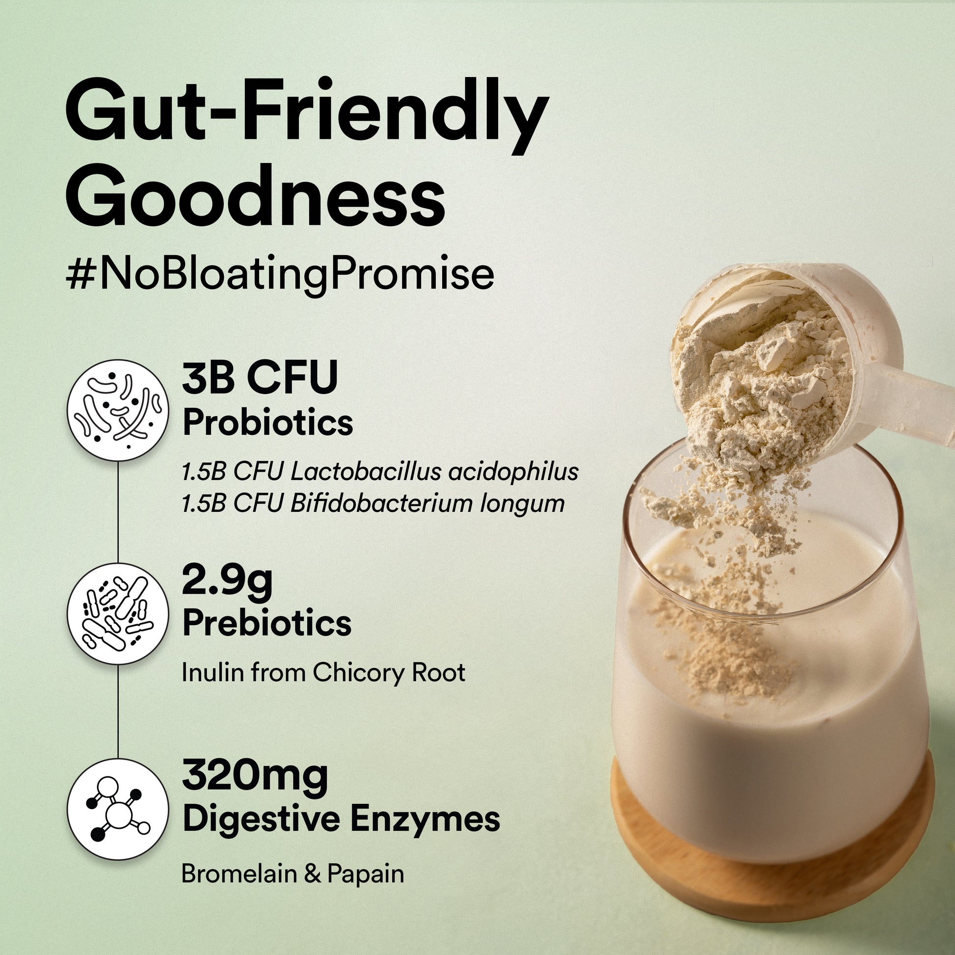 Enriched with digestive enzymes, prebiotics, probiotics, and alkalizing super greens to support gut health.