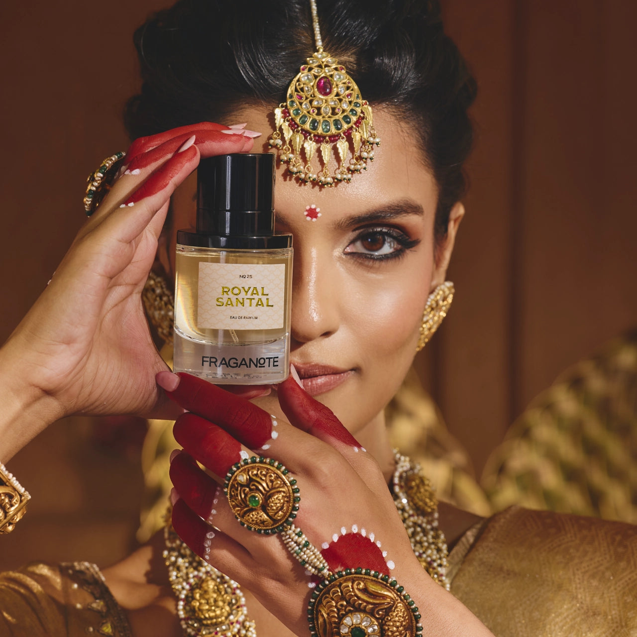 Royal Santal opens with the creamy richness of sandalwood, lifted by the golden sweetness of dates and a subtle hint of first rain. At its heart, vetiver and star anise bring earthy depth and delicate spice, before settling into a regal base of oud, amber, patchouli, and layered sandalwood. From brides adorned with sandalwood paste to the intricate carvings of Mysore artisans, and its role as the crown jewel of global perfumery, this fragrance celebrates sandalwood as South India’s timeless treasure, reimagined for modern royalty.