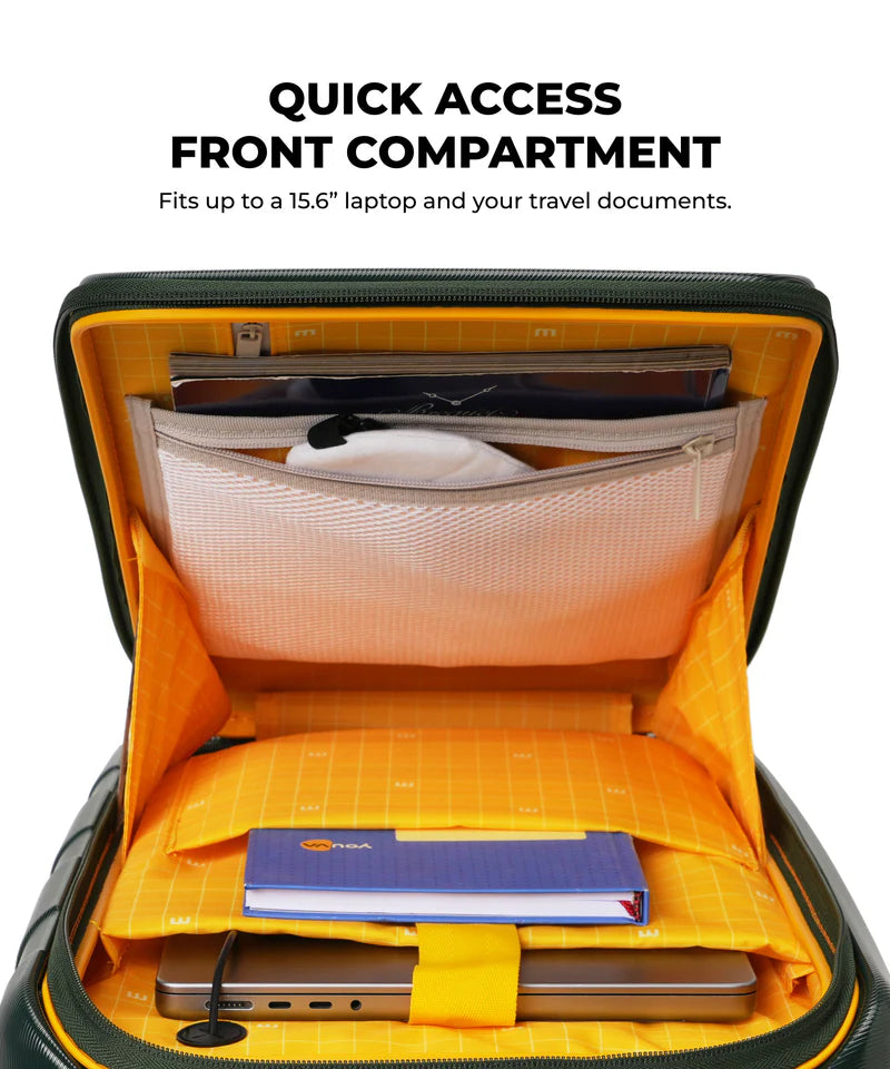 A front compartment which gives you quick access to your tech, while you’re at the security checkpoint. Fits up to a 15.6” laptop, a laptop charger and documents.