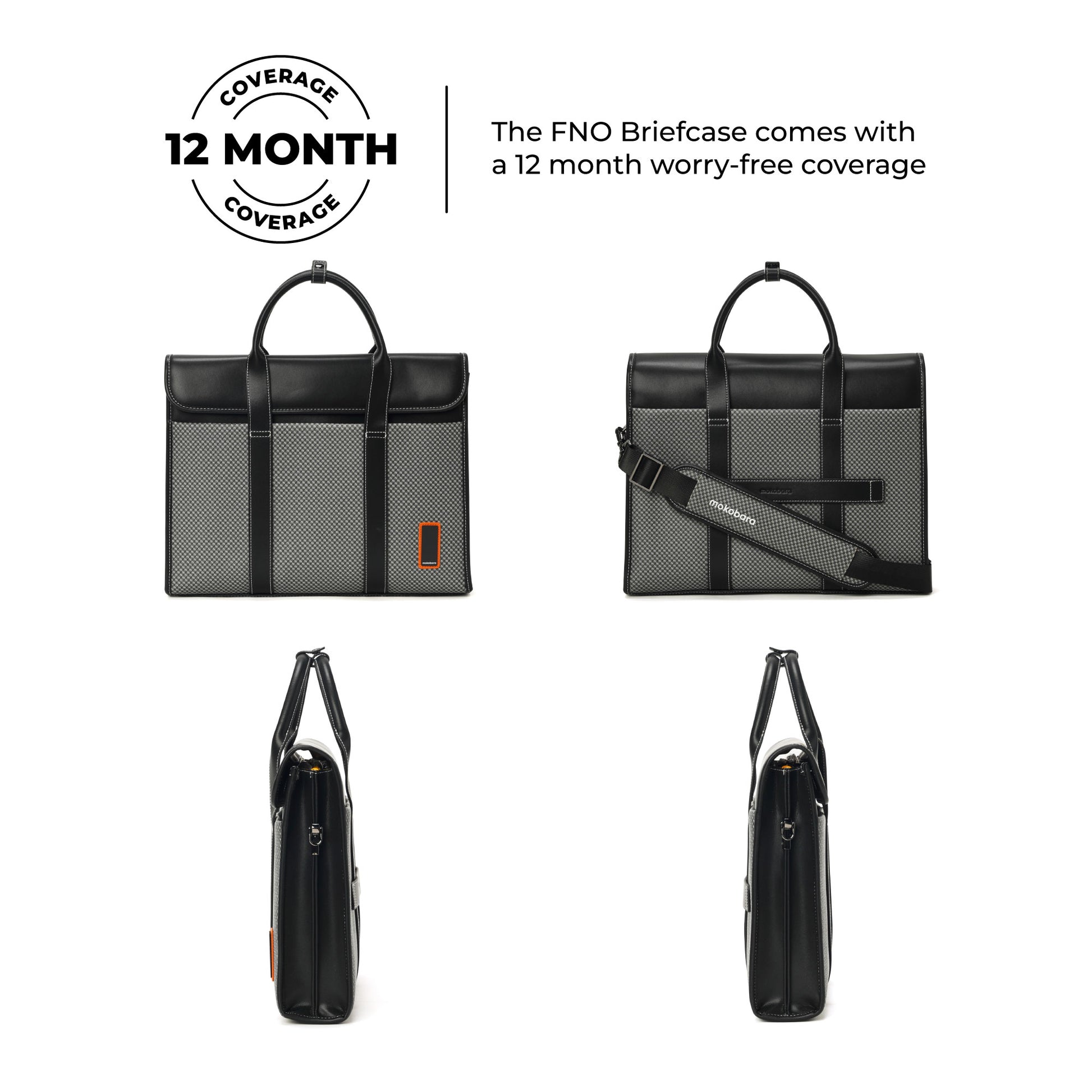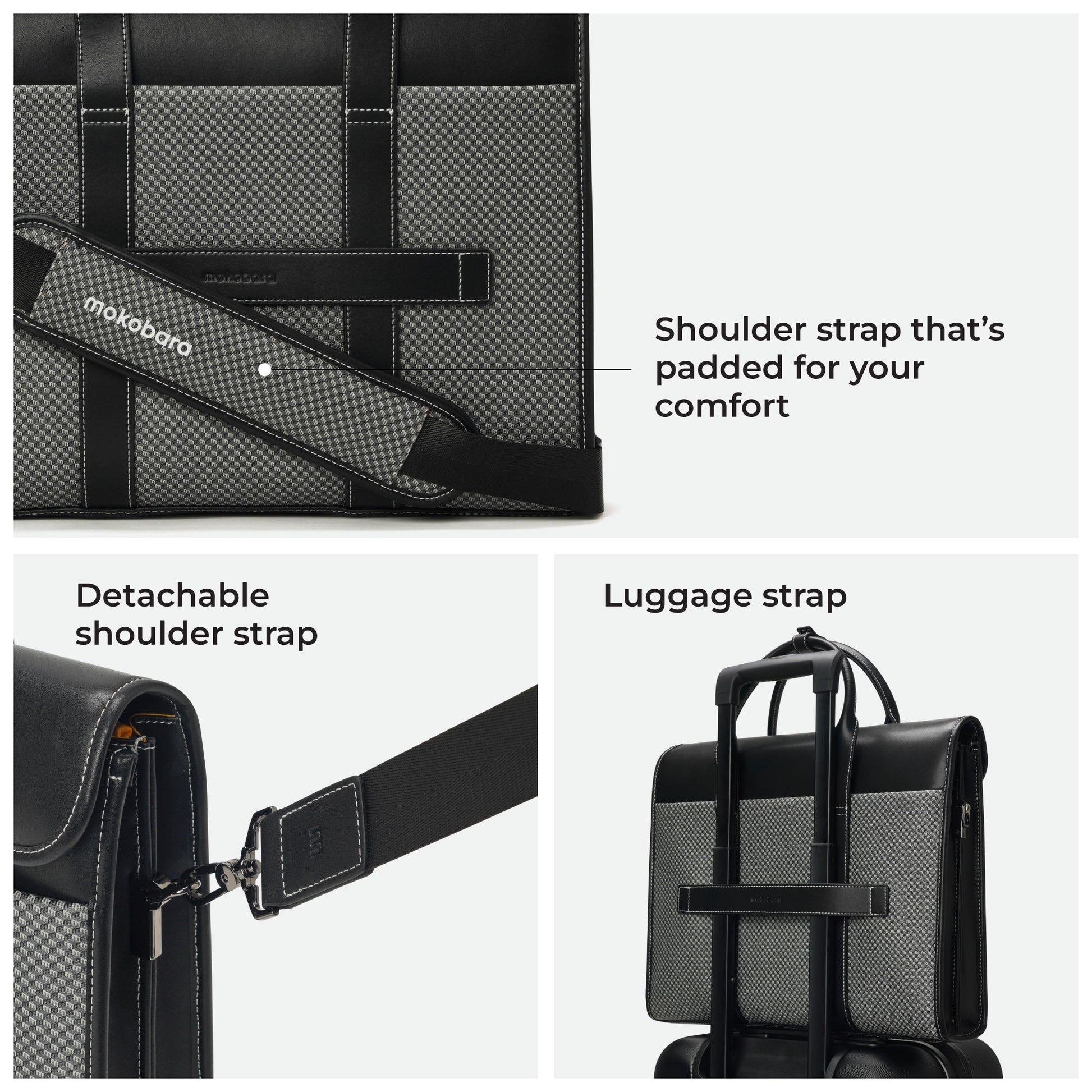 Magnetic snap opening for main compartment and quick access compartments. The main compartment features slip pockets, pen pockets, an internal zipper pocket and a laptop sleeve. Fits up to a 15.6’’ laptop.