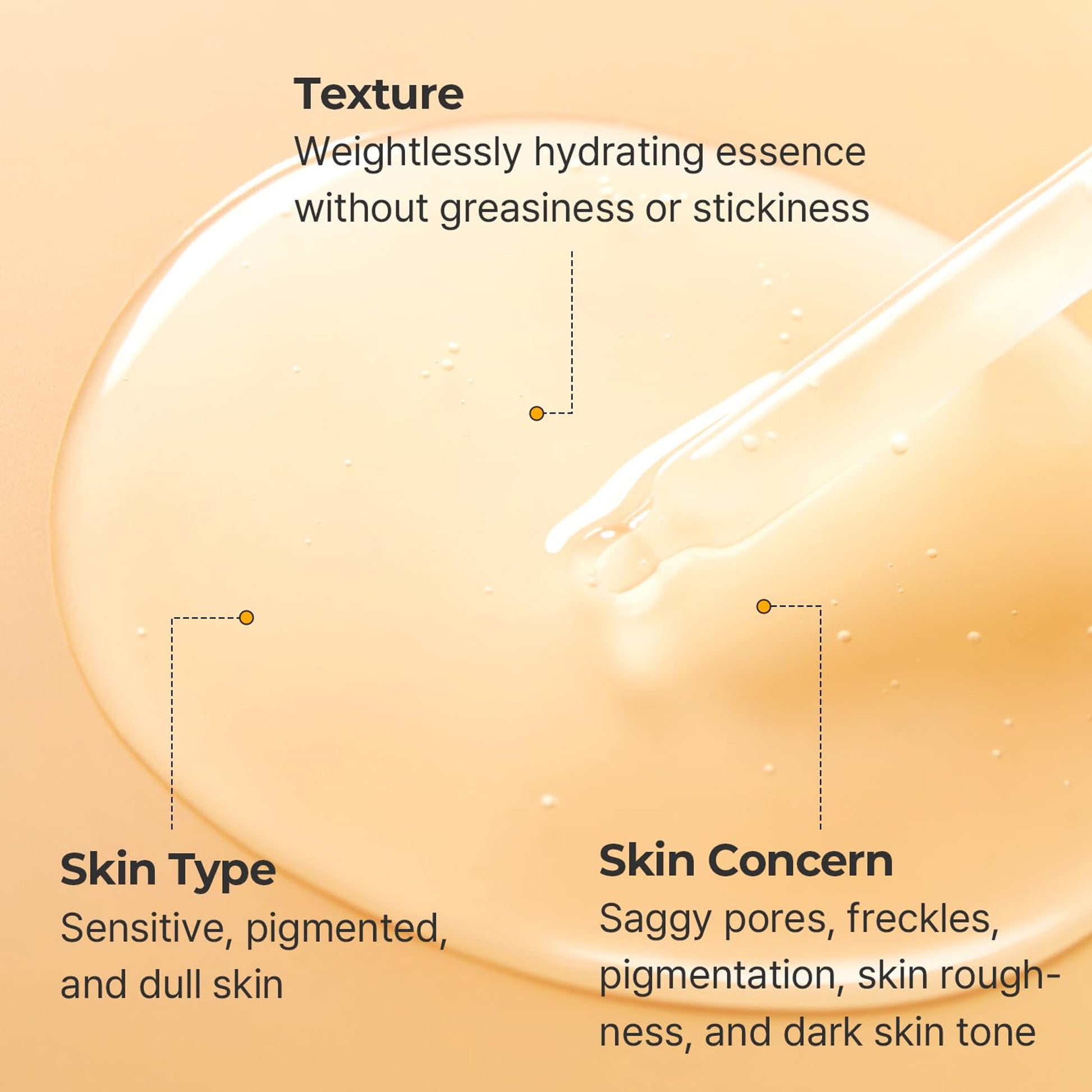 The stabilized pure Vitamin C, four derivatives of Vitamin C, Niacinamide, Ferulic Acid, Panthenol, Allantoin, and Seaweed Complex work together to care for the skin, making it smoother and more even, and it brightens the skin tone and lightens hyperpigmentation, such as dark spots and acne scars.