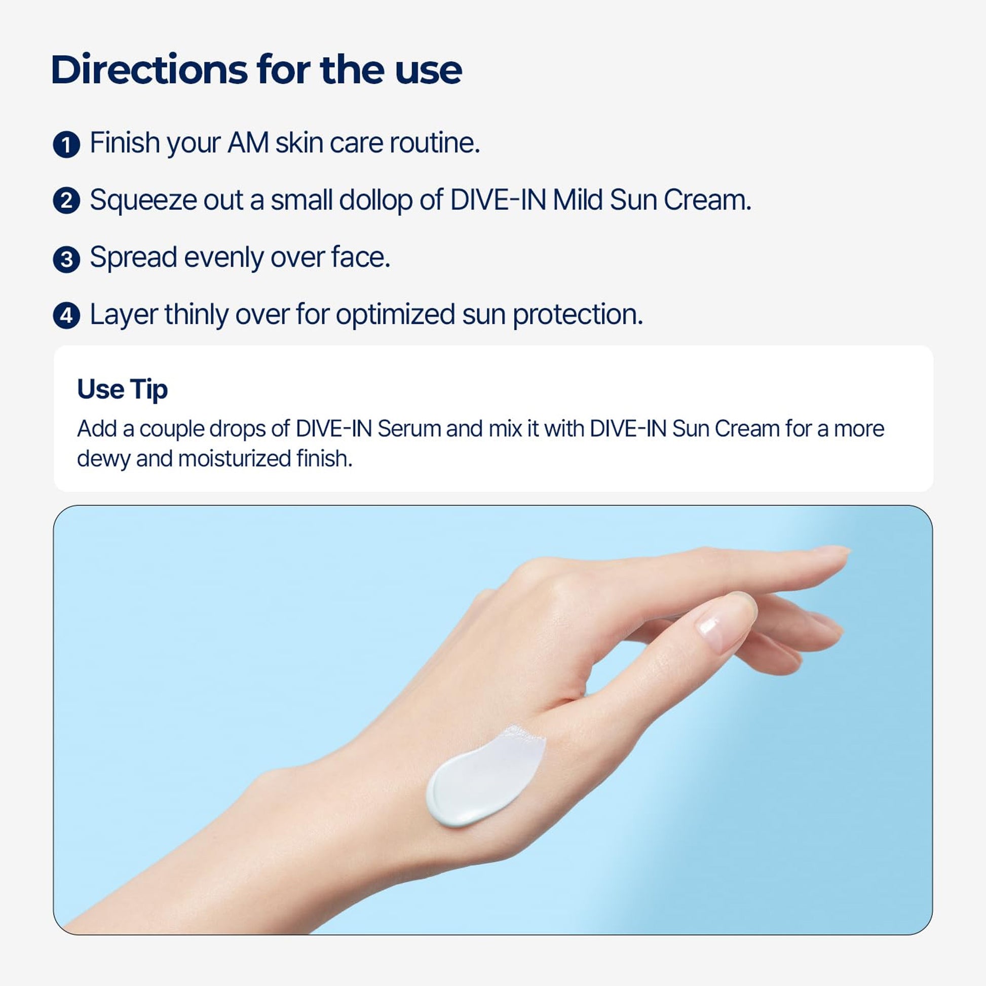 The Torriden Dive In Mild Sun Cream is an award-winning, gentle and moisturizing physical sun cream with SPF50+ PA++++. The non-comedogenic and 100% Zinc Oxide-based formula feels light and fresh on the skin without stickiness, leaving skin balanced, hydrated and naturally matte without irritating or clogging pores.