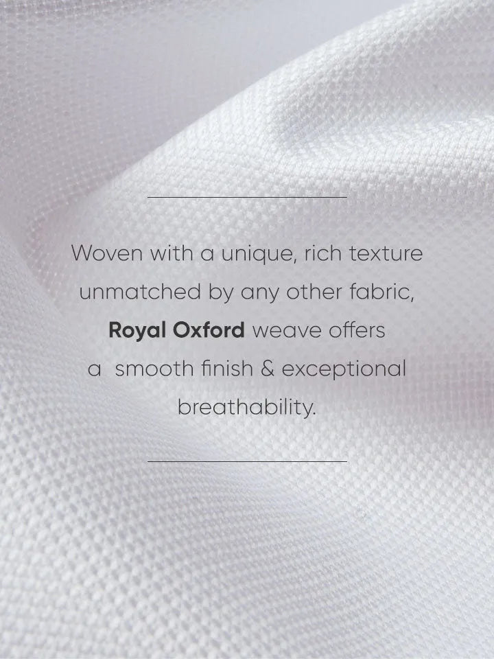 This Royal Oxford shirt is crafted from 100% premium cotton, woven with a rare, intricate structure unmatched by any other fabric. The Royal Oxford weave offers a smooth finish and exceptional breathability, setting it apart from a standard Oxford. Its tightly woven yet lightweight fabric delivers a polished look that stays crisp all day. Unlike traditional Oxfords, its breathable weave ensures superior comfort, making it ideal for hectic days.