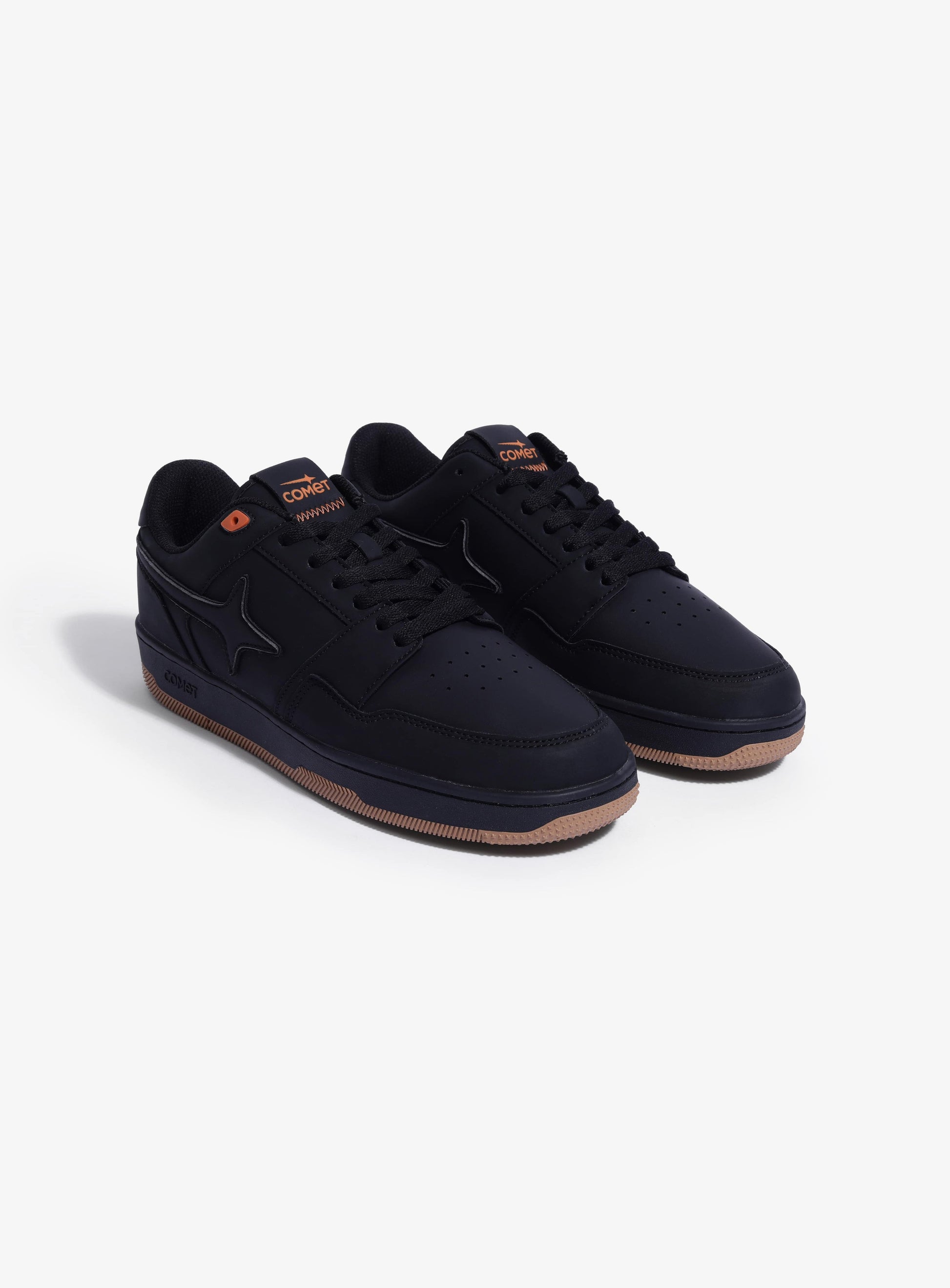 All-black low-top sneaker with monochrome detailing and Comet’s signature comfort system