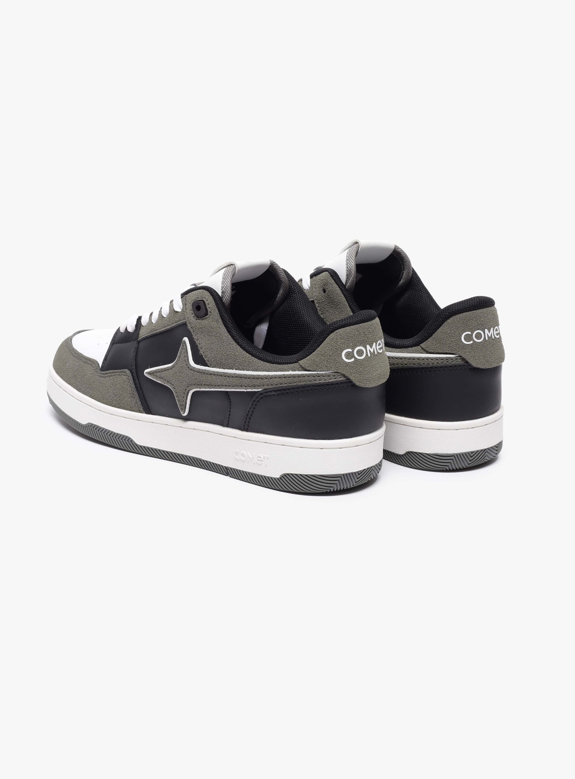 Monochrome low-top sneaker with layered greys and Comet’s signature comfort system